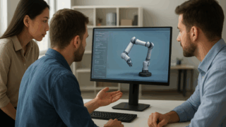組み込みシステムが実際に使用されている様子 (例: スマート家電、産業用ロボット)提案画像: 組み込みシステムが実際に使用されている様子 (例: スマート家電、産業用ロボット)